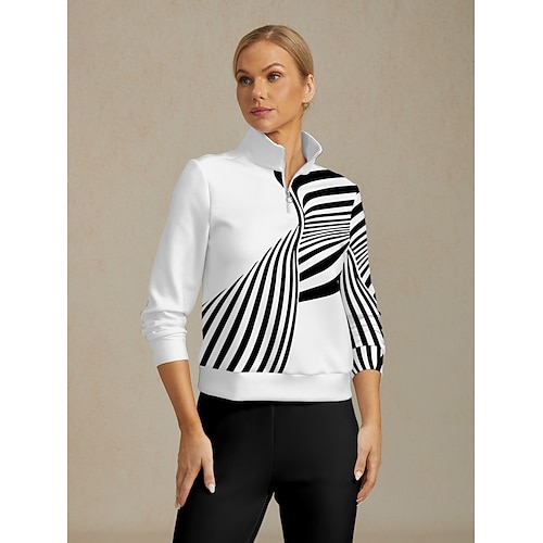 Per donna Felpa da golf Nero con Bianco Manica Lunga Top Abbigliamento da golf da donna Abbigliamento Abiti Abbigliamento
