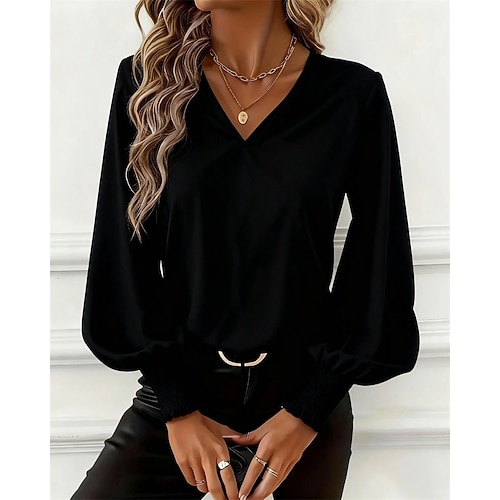 Per donna Blusa Tinta unica Casual Manica Lunga Scollo a V Top Regolari Nero Bianco Rosa Blu Primavera Autunno