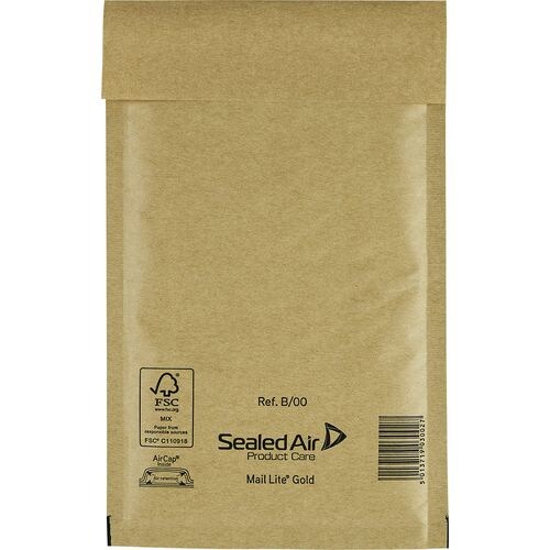 Mail Lite Luftpolster-Luftpolster-Versandtaschen B/00 Gold Ohne Fenster 120 (B) x 210 (H) mm Abziehstreifen 79 g/m² 100 Stück