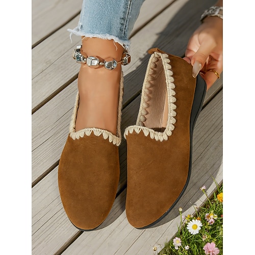 scarpe da donna in finta pelle scamosciata marrone scuro con fodera morbida – comode scarpe casual slip-on da donna per l'uso quotidiano, viaggi, passeggiate, lavoro e gite del fine settimana