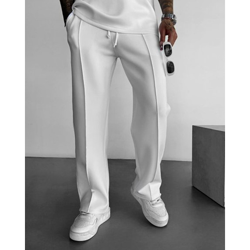 Men's Athletic Pants Sweatpants Trousers Straight Leg Sweatpants Pleated Pants Pocket Elastic Waist Drawstring Plain Comfort Sports Outdoor Daily Fashion Casual Black White Micro-elastic