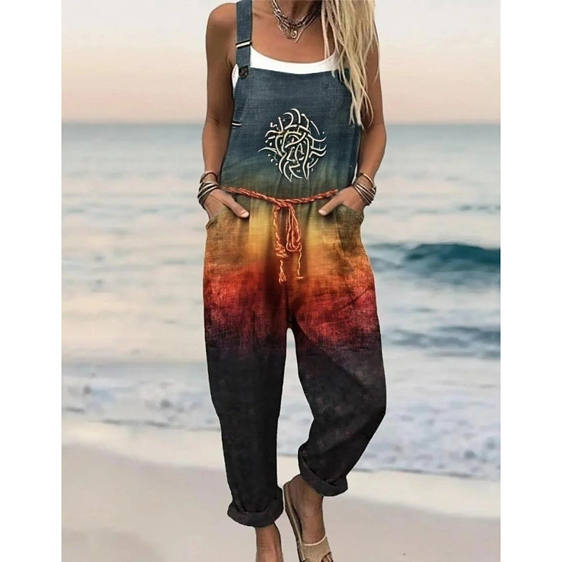Women's Overall Active Floral Sleeveless Harem Round Neck Pocket Print Vacation Home Loose Fit Blue Red Orange Summer