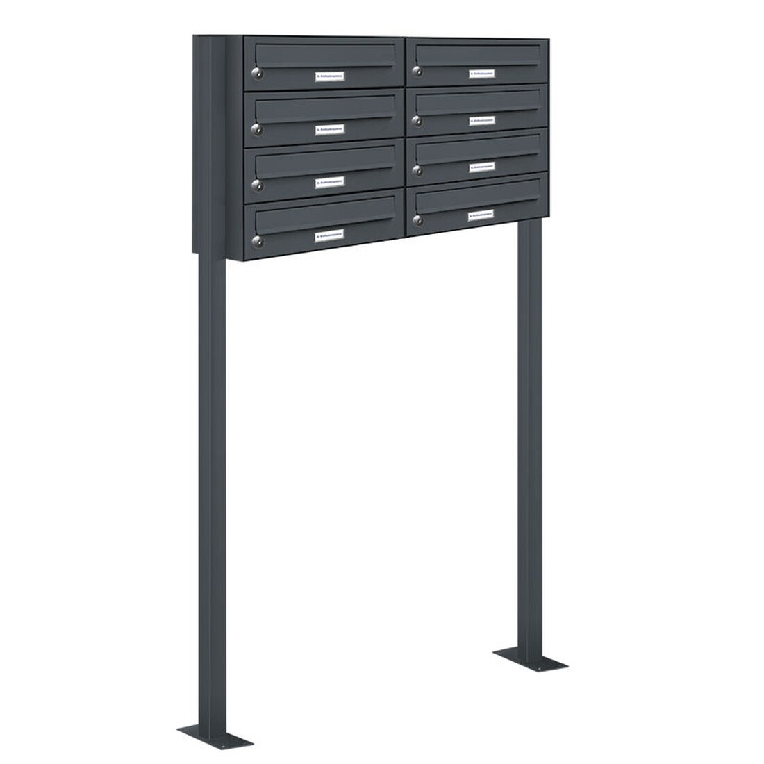 AL Briefkastensysteme 8 Fächer Premium Stand Briefkasten Anlage in RAL 7016 Anthrazit Grau, Post A4, robust, wetterfest, Artikelnummer: 132P8S2P7016