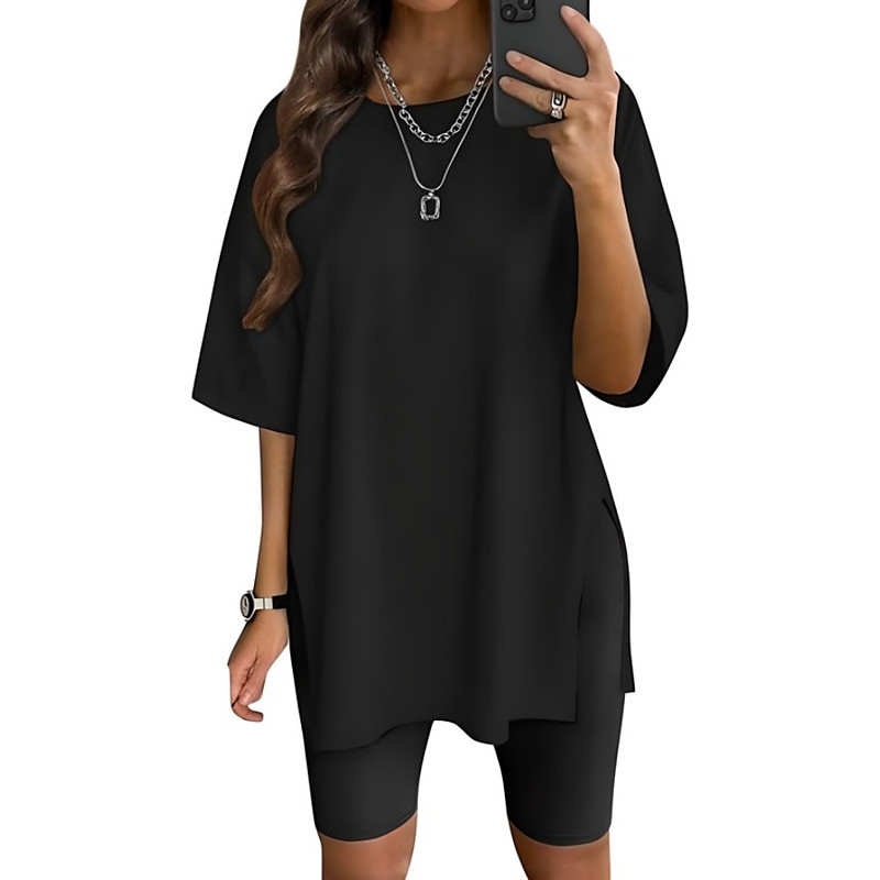 Women's T Shirt Solid Color Graphic Fashion Classic Casual Short Sleeve Crew Neck Round Neck Long Tops Daily Going out Side Split Blue Black White Light Green Pink Summer Spring
