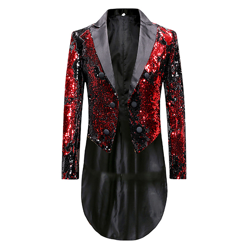 Men's Tuxedo Closure collar Party Sparkle Sequin Solid Colored Blazer Blue Red Gold Tailored Fit Double Breasted Six-buttons