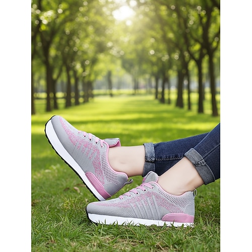 scarpe da ginnastica da donna traspiranti in maglia – scarpe sportive leggere con lacci per camminare, fare jogging, palestra, viaggiare e per l'uso quotidiano