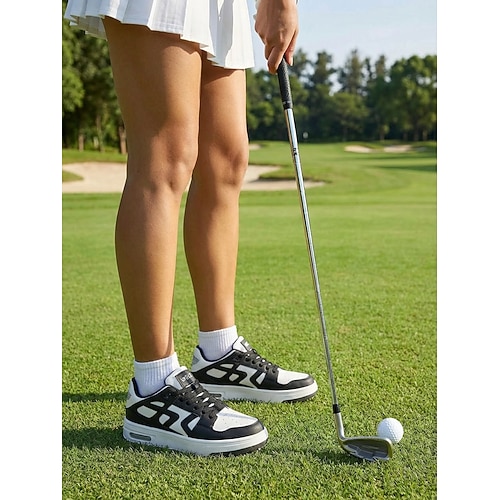 scarpe da golf nere con lacci da donna – scarpe da golf con plateau ammortizzato per donna, design antiscivolo con tacchetti per golf, allenamento, camminata e sport casuali