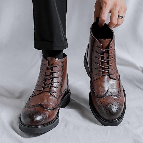 stivaletti brogue in pelle nera da uomo – classici stivali eleganti con lacci e punta a coda di rondine per abbigliamento formale e casual