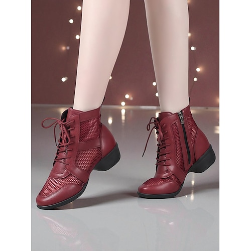 stivali da ballo da donna in pelle a rete con lacci - stivaletti da ballo da sala/latino traspiranti e leggeri con cerniera laterale per l'allenamento delle prestazioni femminili