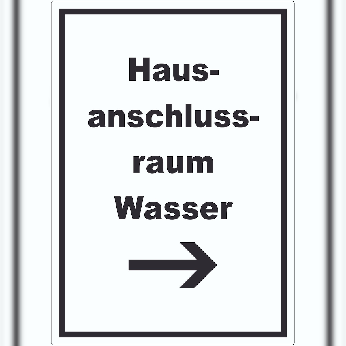 HB-Druck Hausanschlussraum Wasser Schild mit Text Richtungspfeil rechts HAR waagerecht A2 (420x594mm)