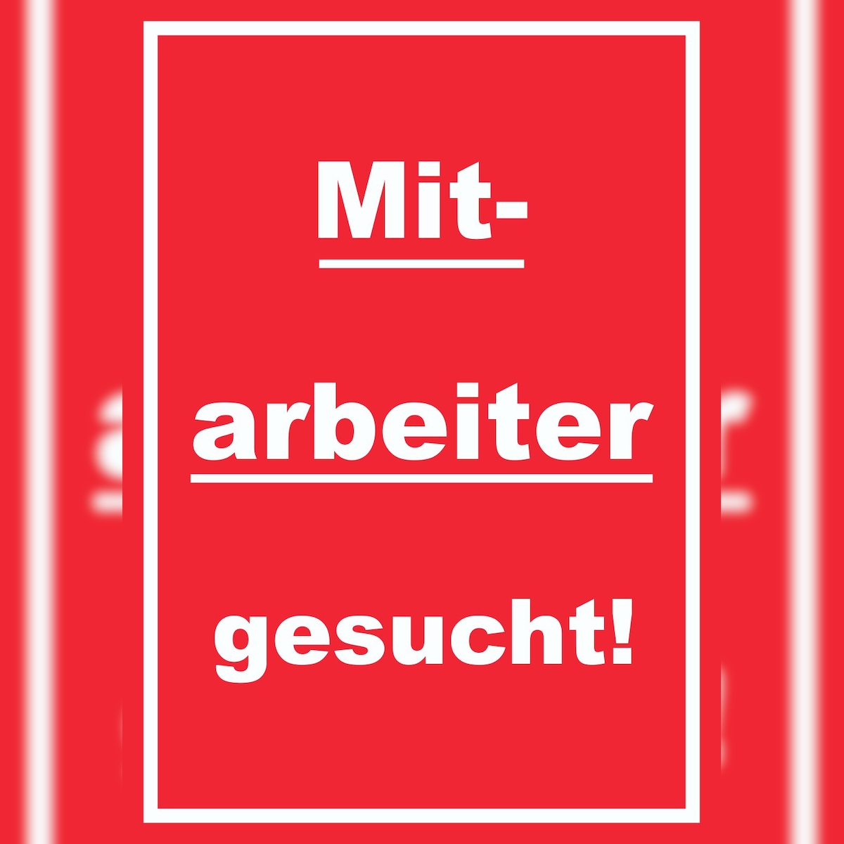 HB-Druck Mitarbeiter gesucht Schild mit Text Aushängeschild hochkant rot-weiss A1 Rückseite selbstklebend