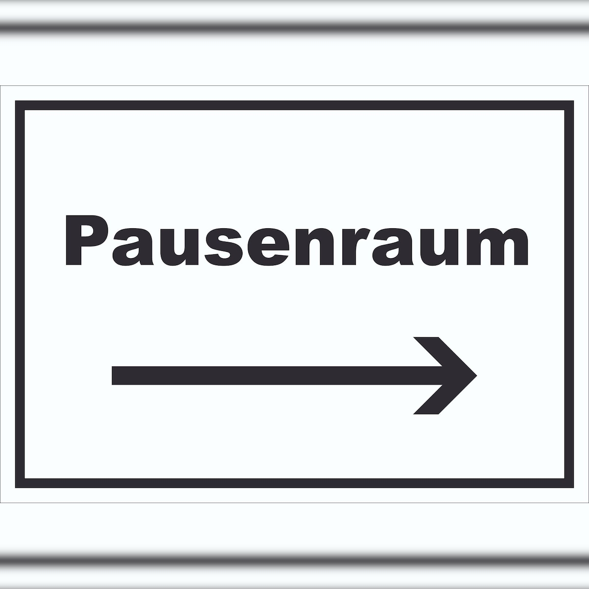 HB-Druck Pausenraum Schild mit Text Richtungspfeil rechts Pause Mittagspause waagerecht A5 Rückseite selbstklebend