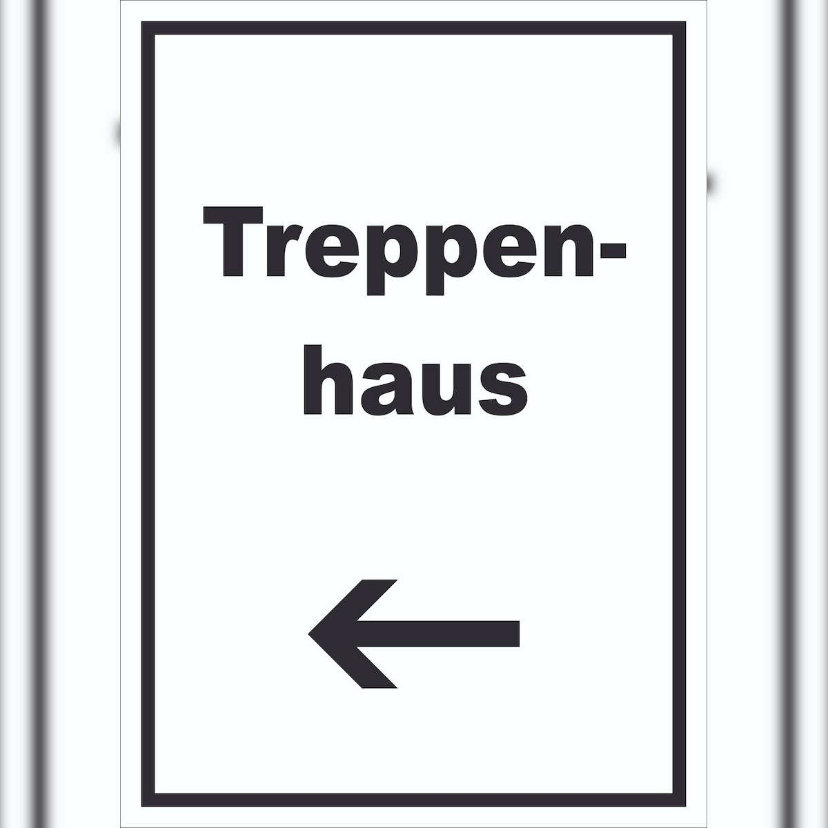 HB-Druck Treppenhaus Schild mit Text und Richtungspfeil links Stufen steigen hochkant A2 Rückseite selbstklebend