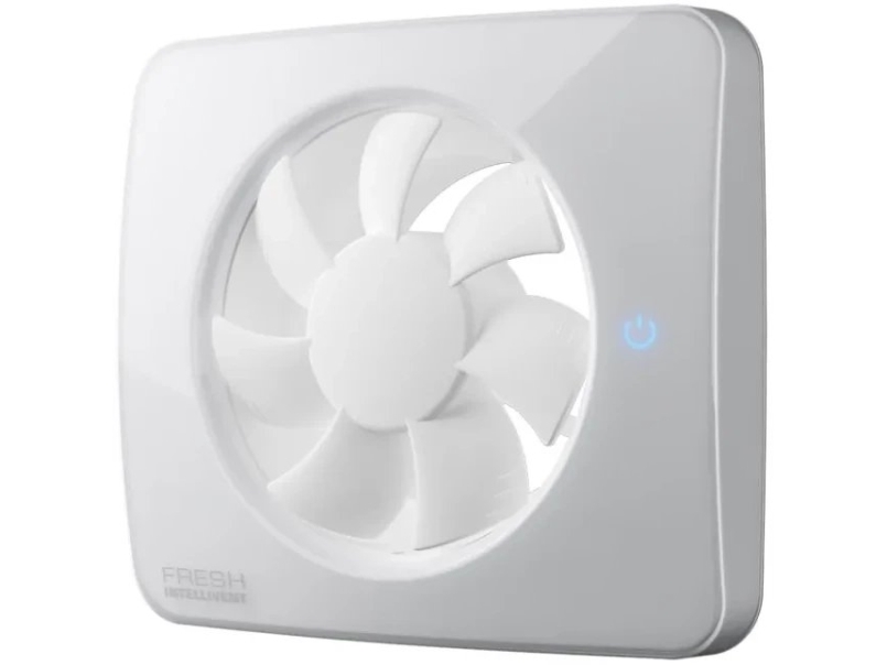 Vifte Fresh 100TH med 2 hastigheter for fuktighetsregulering, timer 15 min, snoretrekk og vindstopp. 88 m³/t. Mål 160x190/Ø100mm.