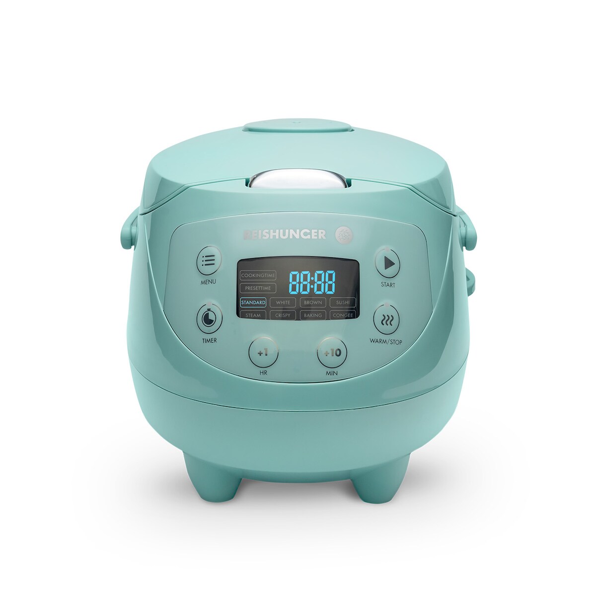 Reishunger Digitaler Mini Reiskocher und Dampfgarer, Mint - Timer - kleiner Multikocher, 8 Programme, 7-Phasen-Kochtechnologie, 1-3 Personen