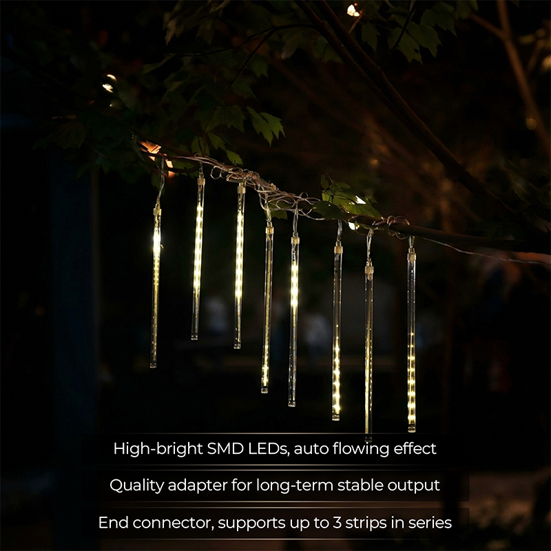 Lights Outdoor Meteor Shower Lights Falling Star Lights 30cm/50cm/80cm 8 Tubes LED Icicle Snow Lights Raindrop Lights for Tree Halloween Holiday Party Decoration