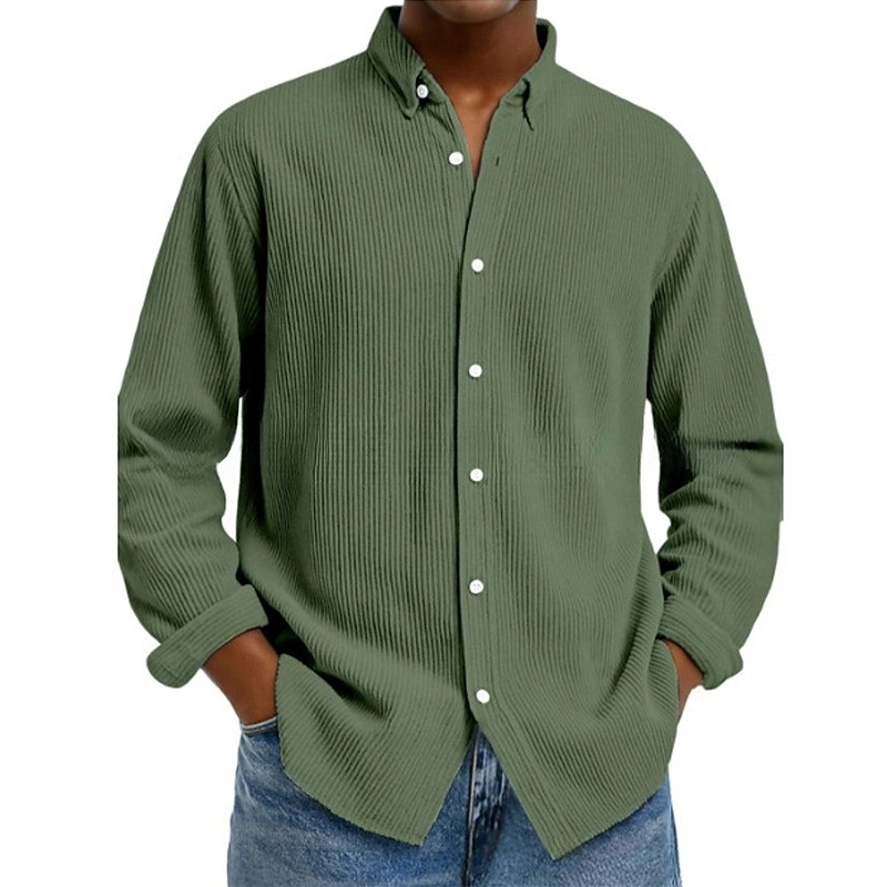 Men's Shirt Casual Shirt Corduroy Shirt Button Up Shirt Blue Black White Light Green Red Long Sleeve Turndown Casual Office / Career Warm Clothing Apparel Polyester Fashion Casual