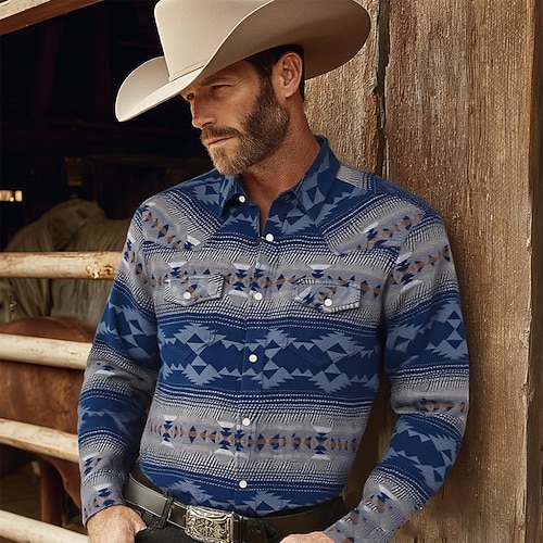 Per uomo Geometrico Azteco Cultura indiana Camicia Camicia Western Camicia da cowboy Manica Lunga Vintage Retrò Casuale All'aperto Abbigliamento da lavoro Primavera Autunno Collo ripiegato Due tasche
