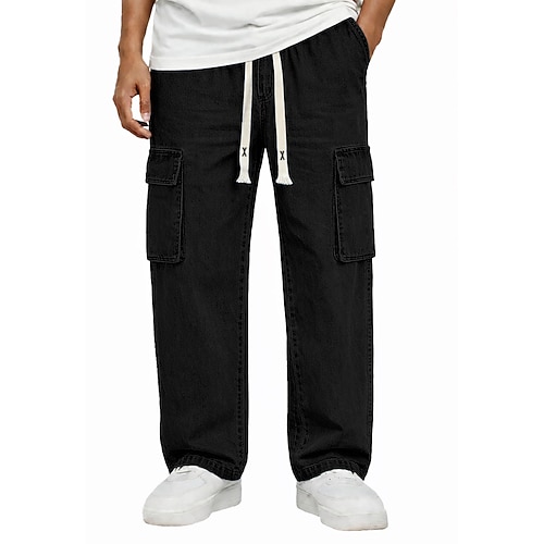 Herren Cargo-Hosen Hose Freizeithose 100% Baumwolle Acid-Wash-Hosen Kordelzug Mehrere Taschen Gerader Schnitt Einfach Komfort Atmungsaktiv Volle Länge Lässig Täglich Outdoor Mode Klassicher Stil Blau