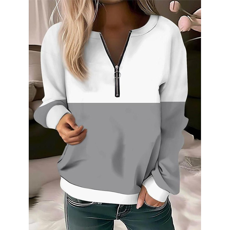 Women's Blouse Solid Color Stylish Casual Long Sleeve Crew Neck Regular Tops Daily Zipper Black Pink Red Blue Purple Spring Fall Winter
