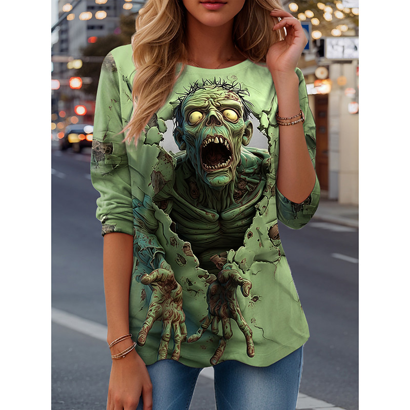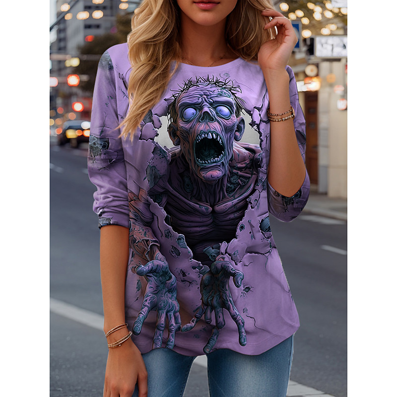 Women's T Shirt Graphic Skull Vintage Fashion Stylish Long Sleeve Crew Neck Regular Tops Daily Weekend Print Pink Blue Purple Green Spring Fall Winter