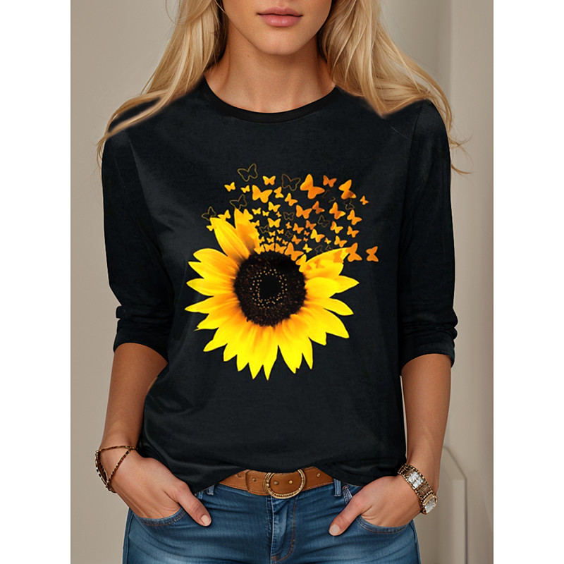 Women's T Shirt Floral Graphic Vintage Stylish Casual Long Sleeve Crew Neck Regular Tops Daily Print Black Blue Gray Spring Fall Winter