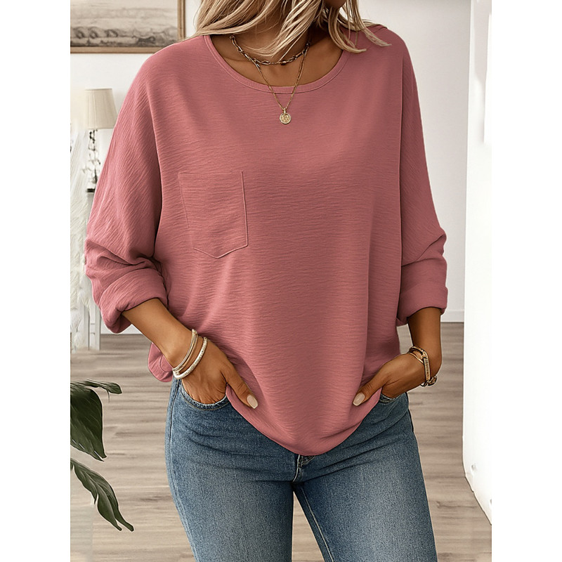 Women's T Shirt Plain Classic Modern Casual Long Sleeve Crew Neck Regular Tops Daily Weekend Pocket Black White Yellow Pink Green Summer Spring Fall
