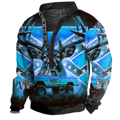 Per uomo Cervo Felpa Da caccia Manica Lunga Collo Alto Regalo Viaggio Abbigliamento casual alla moda Blu Arancione Verde Bottoni Davanti Autunno Inverno progettista S M L XL XXL XXXL