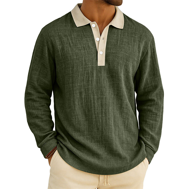 Men's Golf Shirt Golf Polos Shirts Work Casual Lapel Long Sleeve Basic Modern Color Block Patchwork Buttons Spring Fall Regular Fit Deep Green Black White Light Green Dark Blue Red Golf Shirt