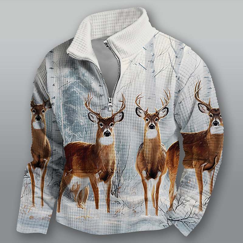 Men's Deer Waffle Sweatshirt Fashion Daily Classic Casual Stand Collar Quarter Zip Outdoor Home Office Work White 1 White 2 White 3 Zip Up Fall Winter Designer S M L XL XXL XXXL
