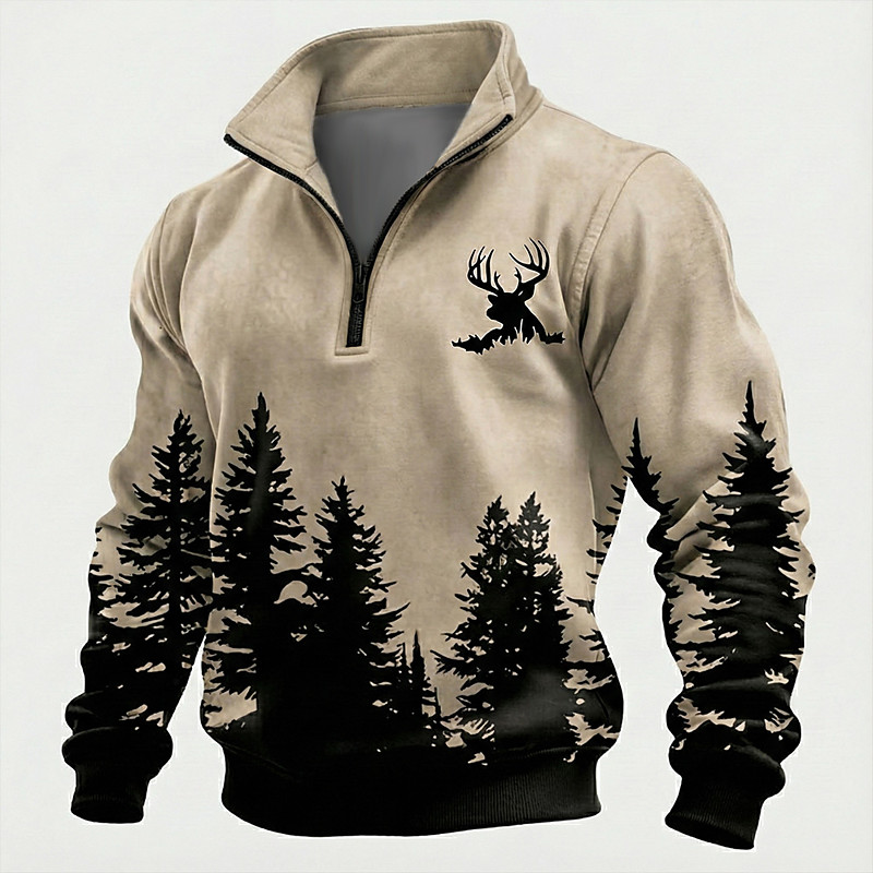 Men's Deer Sweatshirt Fashion Daily Casual Hunting Stand Collar Quarter Zip Outdoor Home Office Work Brown Khaki Gray Zip Up Fall Winter Designer S M L XL XXL XXXL