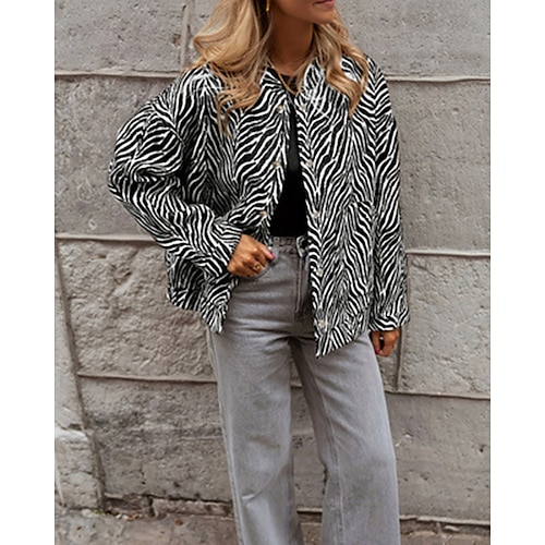 Damen Jacke Freizeitjacke Warm Bequem Tasche Knöpfe Lässig Gestreift Urlaub Straße Lässig Alltagskleidung Regulär V Ausschnitt Normale Passform Langarm Oberbekleidung Schwarz Herbst Winter