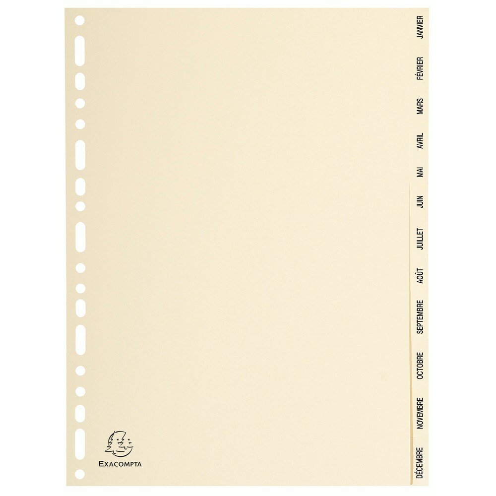 Exacompta Register mit bedruckten Taben aus Karton 155g/qm, 12 Positionen Taben Ja.-Dez., für Format DIN A4