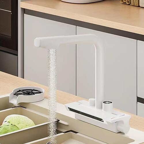 Wasserfall-Küchenarmatur, herausziehbarer Spültischmischer, Wasserhähne, LCD-Digitalanzeige, mit G1/2-Kalt- und Warmwasserschlauch