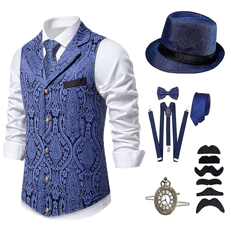 Retro Vintage Roaring 20s 1920s Outfits Waistcoat Accesories Set Gentleman Gangster Fancy Dress Men's Halloween Carnival New Year Carnival Party / Evening Masquerade Adults' Cravat Vest Hat All