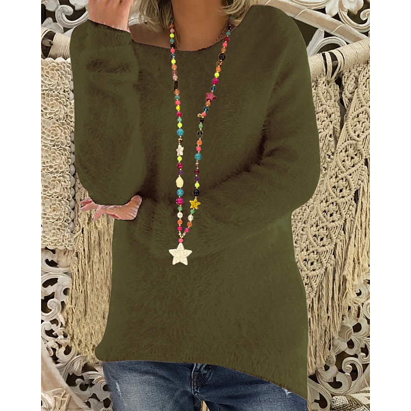 Women's Sweater Pullover Streetwear Casual Pure Color Ribbed Crew Neck Knitted Long Sleeve Long Tops Knit Outdoor Daily Weekend Hot Pink Pink Fall Winter