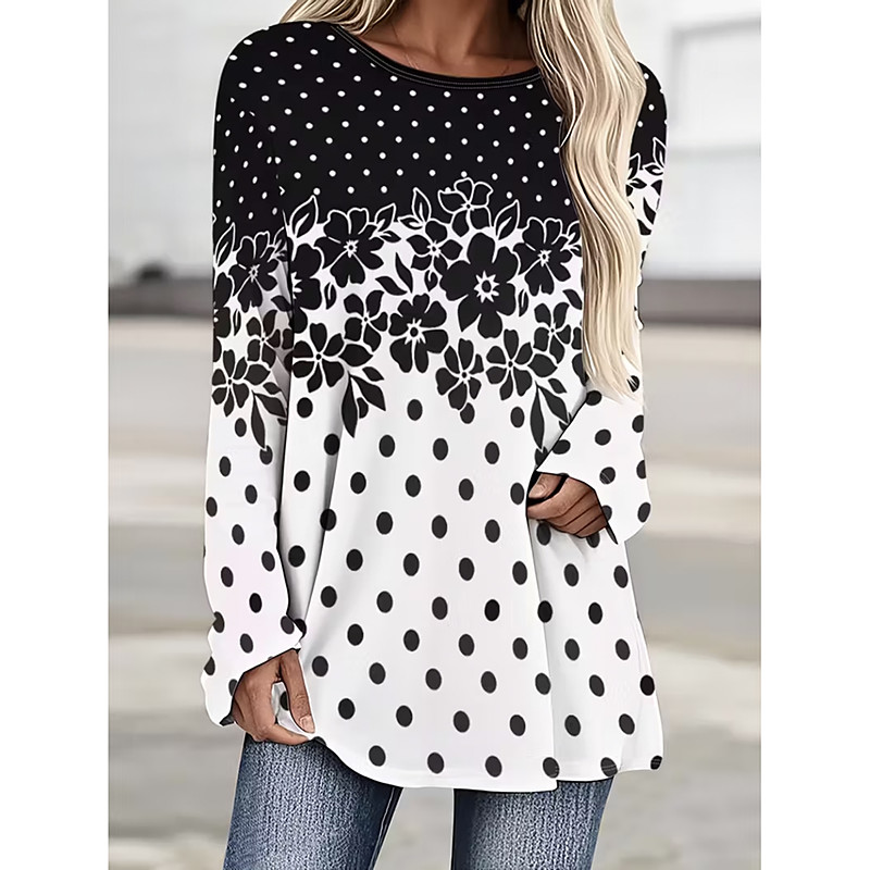 Women's T Shirt Floral Graphic Polka Dot Vintage Stylish Classic Long Sleeve Crew Neck Round Neck Regular Tops Daily Print White / Black Black White Spring Fall