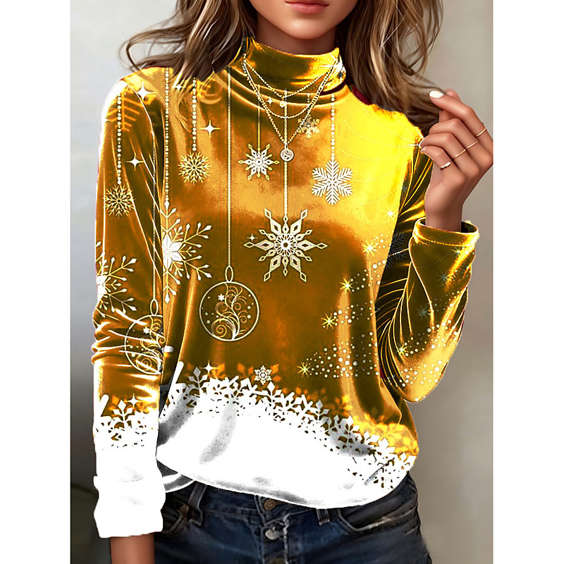 Valentine's Day Women's Tunic Tee Graphic Polka Dot Snowflake Elegant Vintage Fashion Long Sleeve Turtleneck Regular Tops Daily Going out Weekend Print Blue Yellow Red Purple Green Fall