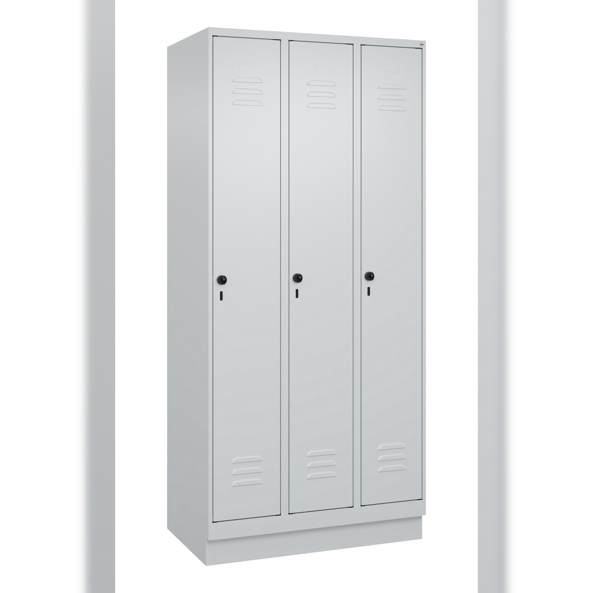 C+P Spind Classic PLUS, Sockel, 3 Abteile, HxBxT 195x90x50cm, Sicherheitsdrehriegel, Hellgrau/Hellgrau von PROREGAL