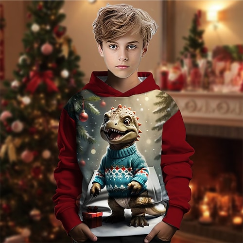 Weihnachten Jungen 3D Dinosaurier Kapuzensweatshirt Langarm Frühling Herbst Mode Streetwear Kinder 4-12 Jahre Mit Kapuze Outdoor Lässig Täglich Normale Passform