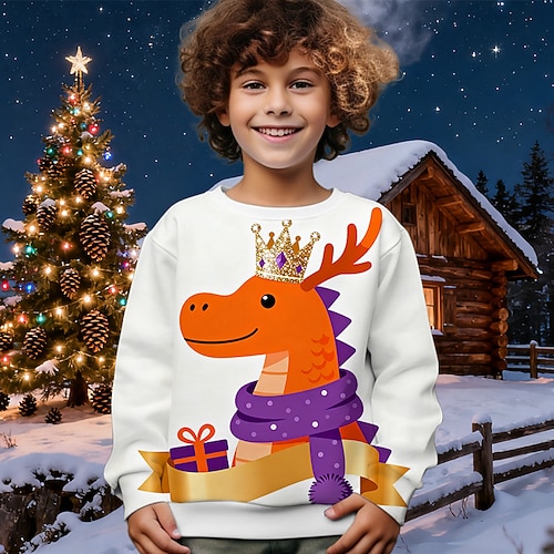 Weihnachten Jungen 3D Dinosaurier Sweatshirt Langarm Frühling Herbst Mode Basic Kinder 4-12 Jahre Rundhalsausschnitt Outdoor Lässig Täglich Normale Passform