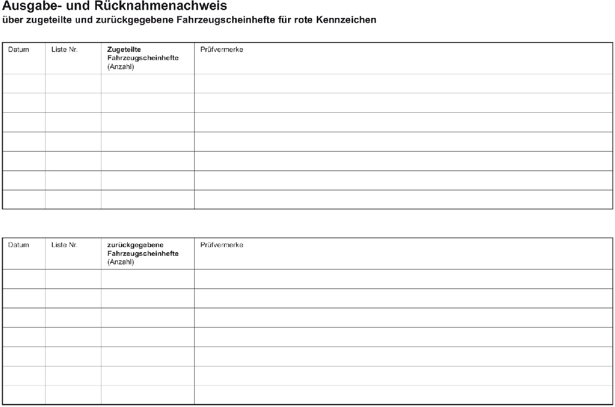 RNK Nachweisheft für rote Kennzeichen A5 quer 8 Blatt
