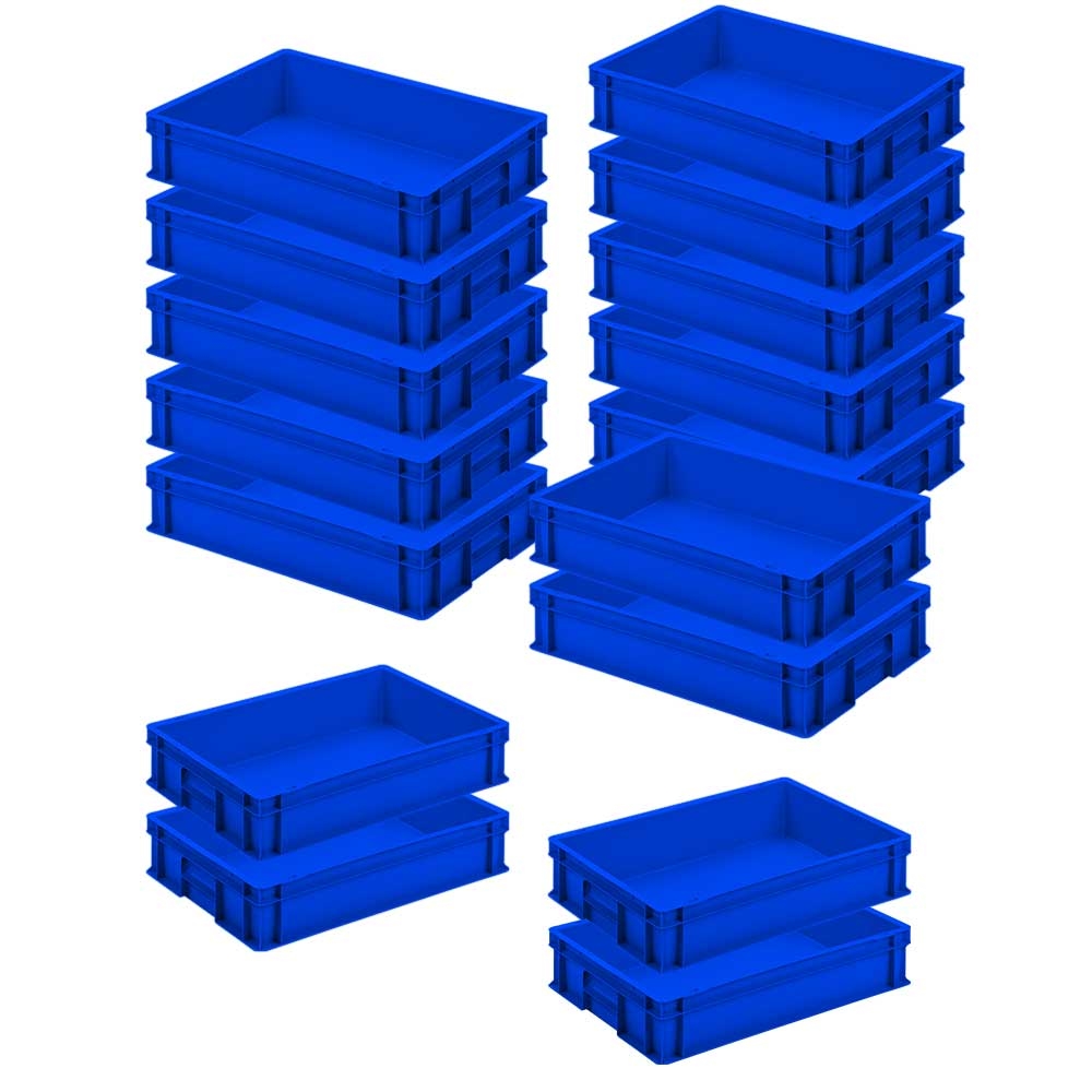 16x Eurobehälter LxBxH 600 x 400 x 120 mm, 24 Liter, PP, lebensmittelecht, Farbe blau
