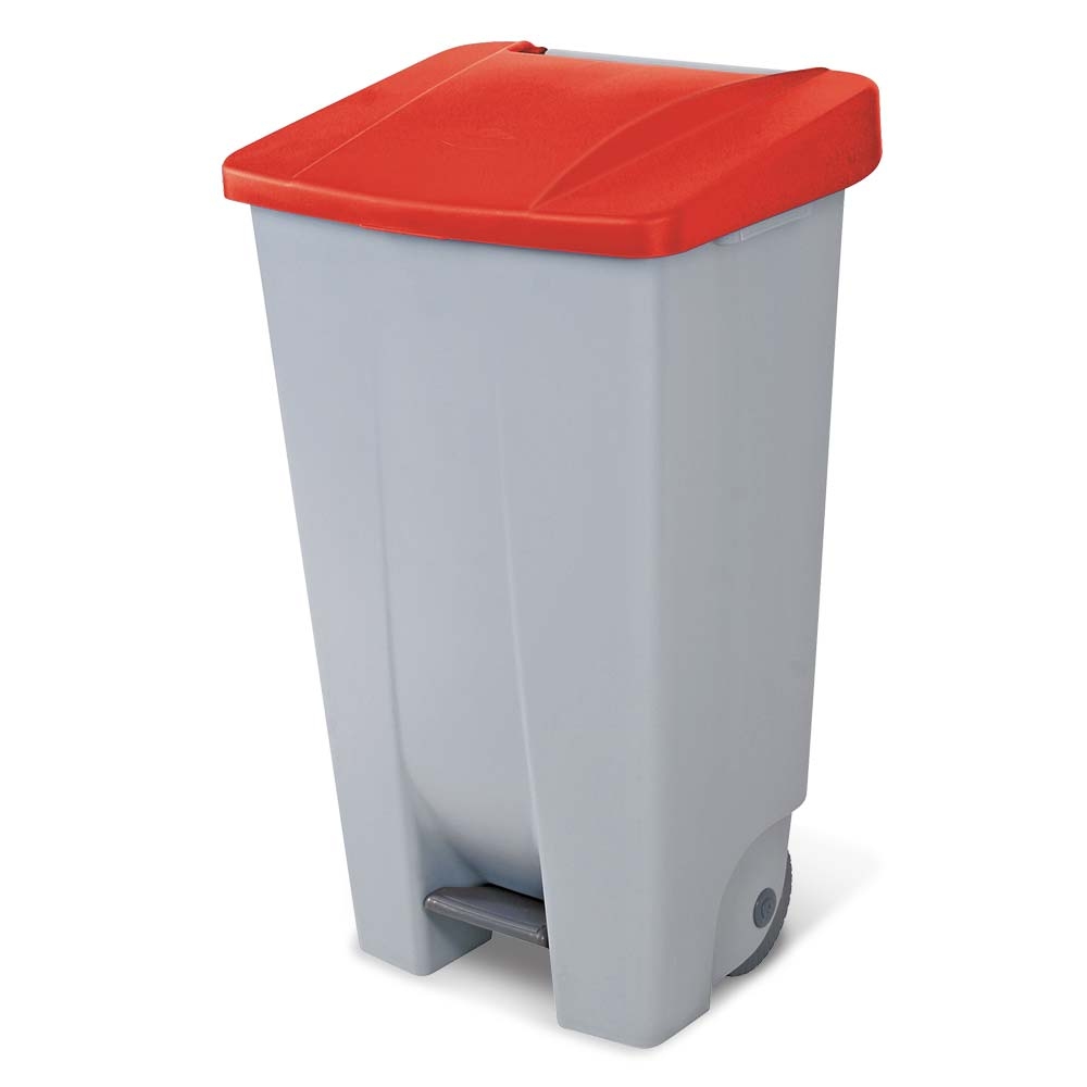 BRB Tretabfalleimer mit Rollen, Inhalt 120 Liter, HxBxT 880 x 430 x 510 mm, grau/rot