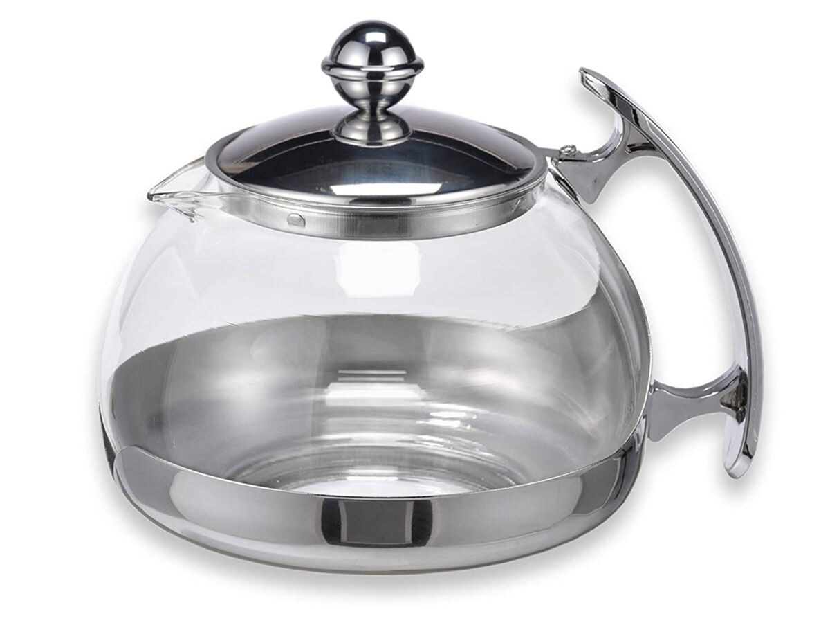 Teekanne Glas mit Edelstahl Stövchen Tee Set Teewärmer Teebereiter ca. 1,2 Liter