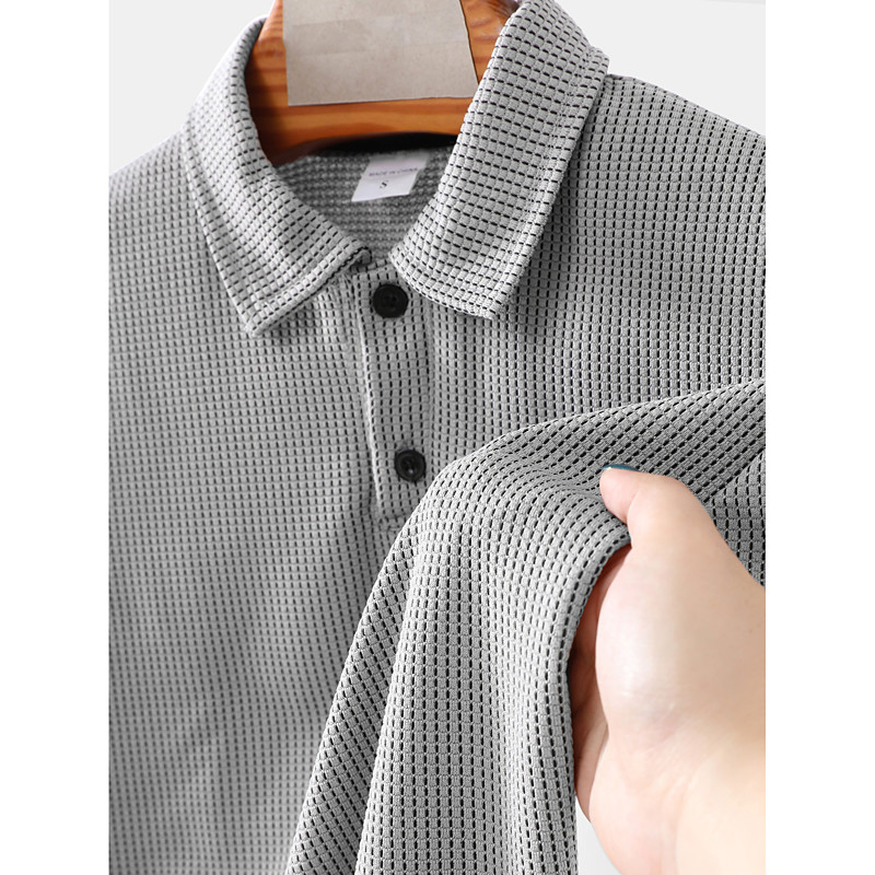 Men's Waffle Polo Shirts Textured Casual Sports Lapel Ribbed Polo Collar Short Sleeve Fashion Basic Plain Classic Plain Summer Spring Regular Fit Blue Black White Coffee Orange Gray Waffle Polo Shirts