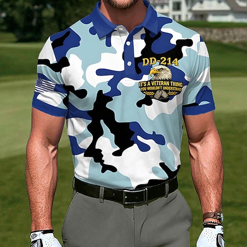 Giorno dell'Indipendenza Americana Per uomo Golf Polo Sportivi Manica Corta Magliette polo Camicie con Colletto Casual Athleisure Abito da festa Bottoni Estate Blu Blu 1 Blu 2#