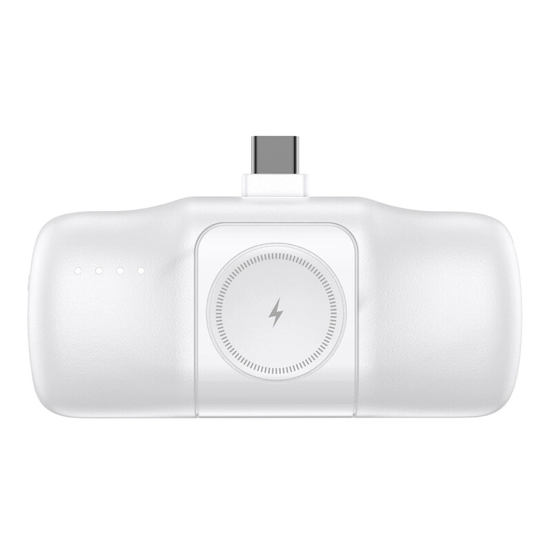 Wozinsky WF16-YCS 5000mAh 15W USB-C Mini Powerbank mit integriertem USB-C Kabel und Apple Watch Ladegerät – Weiß