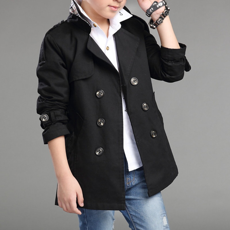 Kids Boys Trench Coat Outwear Long Sleeve Windproof Plain Winter Basic Daily Coat 4-13 Years Black Khaki Red