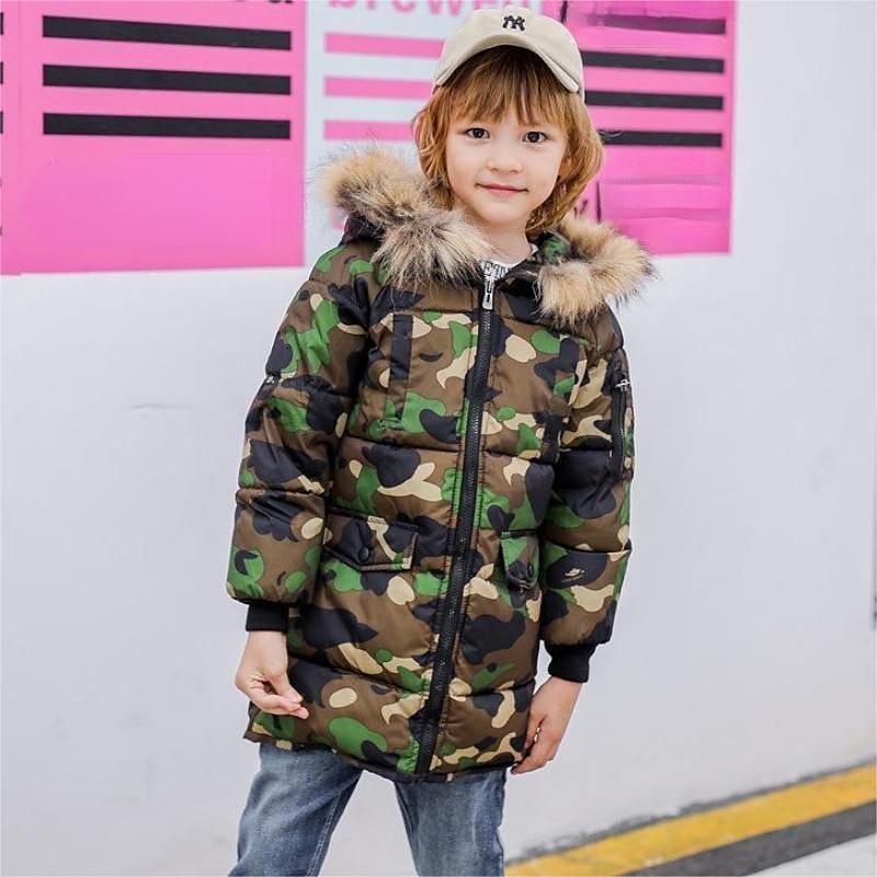 Kids Unisex Down Coat Hoodie Jacket Outerwear Solid Color Camo Long Sleeve Pocket Coat Outdoor Daily Basic Camouflage Black Black Yellow Fall Winter 4 years